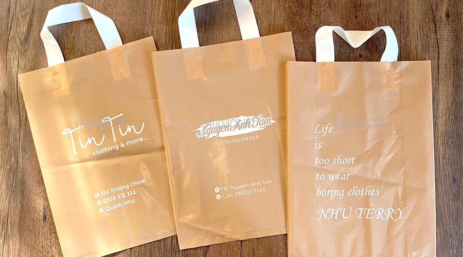 - Túi PE (hay túi bóng, túi dẻo): Bề mặt bóng láng, mịn màng, dẻo dai, không bị nhăn. Đây chính là chất liệu “sang” mà các shop thời trang cao cấp bắt buộc phải dùng. Nó tạo cảm giác đắt tiền, mềm mại và lên màu in đẹp nhất.